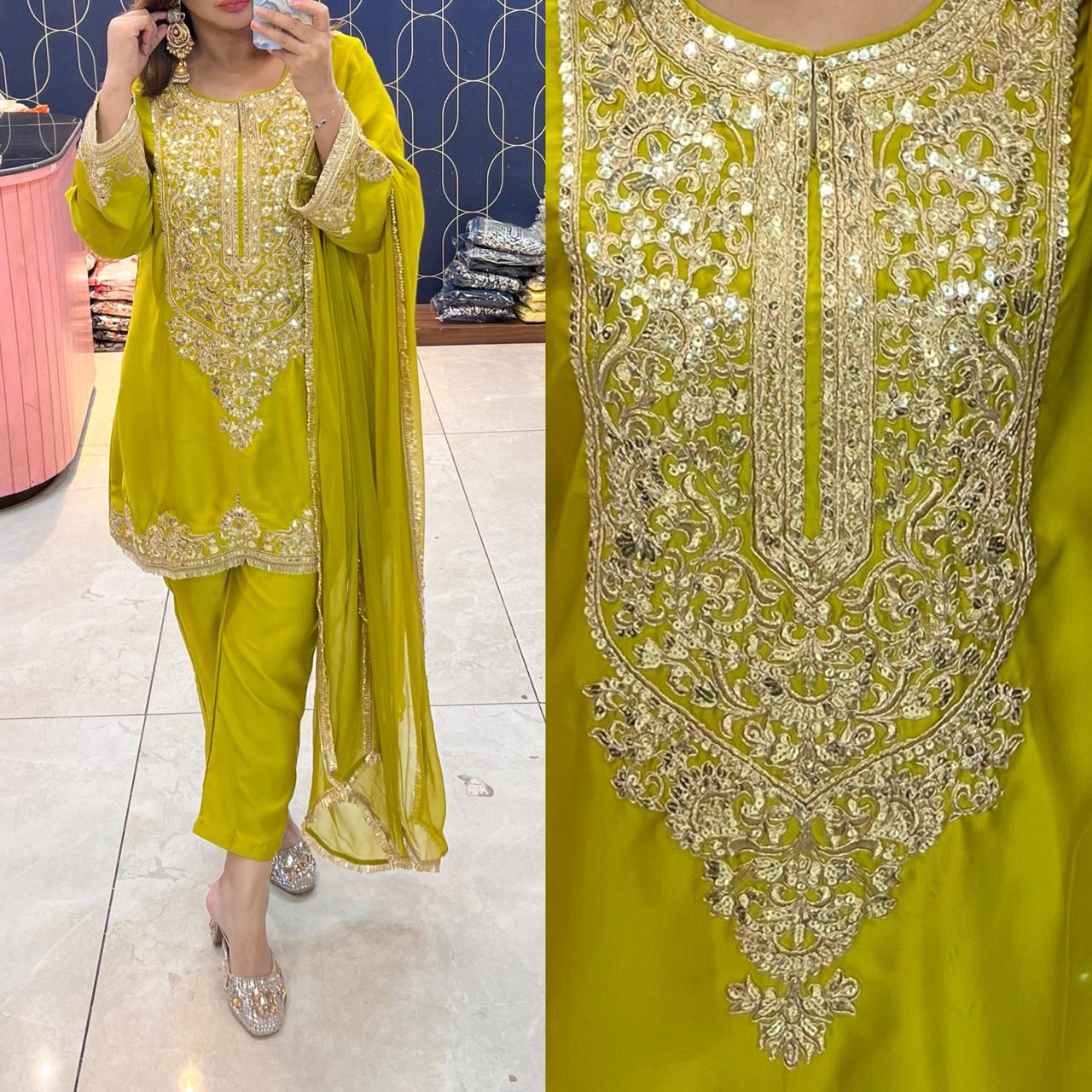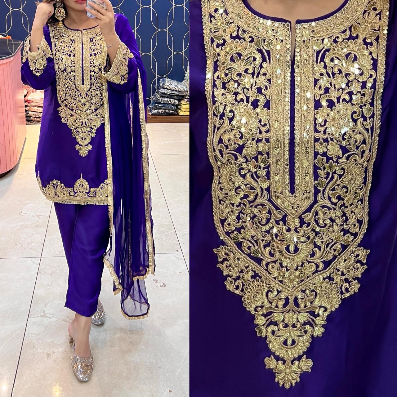 πŸ’« Beautifully highlighted with heavy embroidery, this outfit adds a royal touch to your festive and special occasion wardrobe.