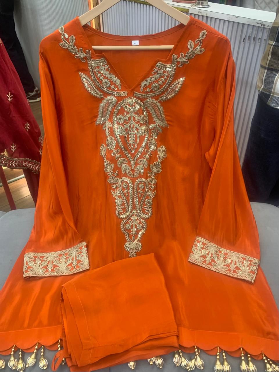 Article 1704 – Pure Crepe Embroidered Co-ord Set with Tassels | Sizes 40–46