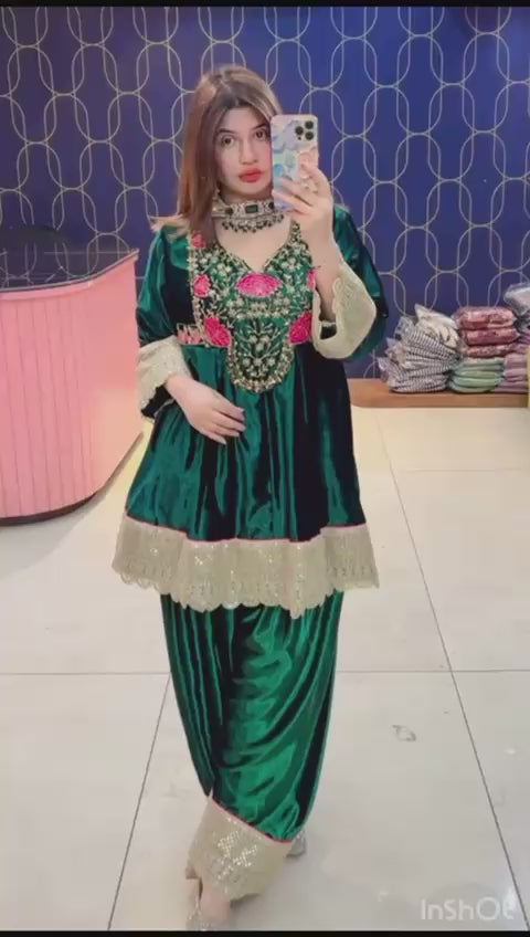Article 1799 is a luxurious Velvet Handwork Farshi Salwar Suit, crafted for women who love rich, elegant ethnic wear. Made from premium velvet fabric, this outfit is beautifully enhanced with intricate handwork that adds a regal and festive charm.