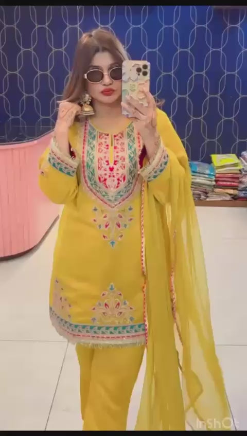 Elevate your ethnic style with Article 1891, a stunning Pure Silk Fabric Co-ord Set paired with a beautiful designer dupatta. This elegant outfit is highlighted with intricate embroidery, adding a luxurious touch to your festive and party looks.