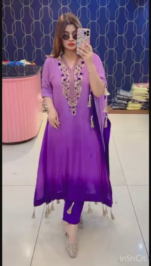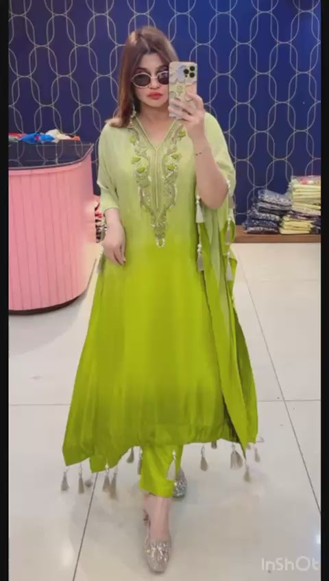 Article 1901 – Pure Crepe Ombre Print Kaftan with Hand Embroidery | Premium Designer Wear | Sizes 38–46