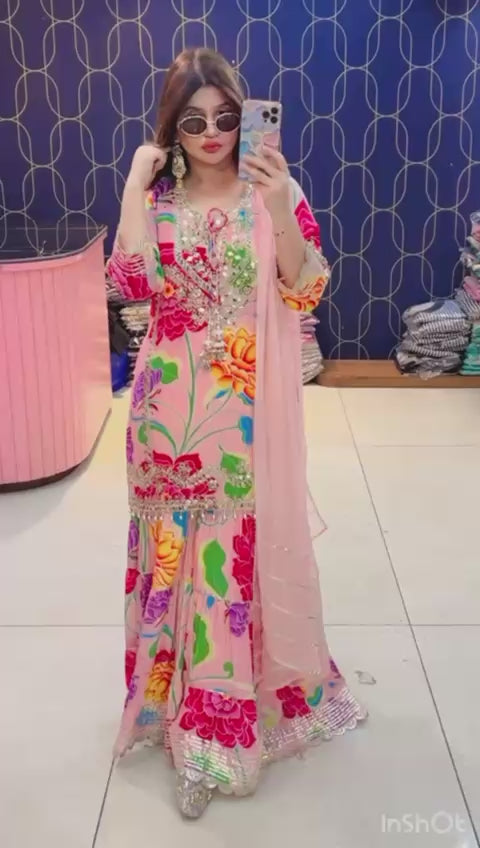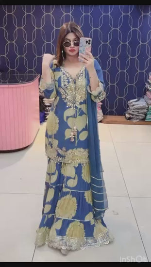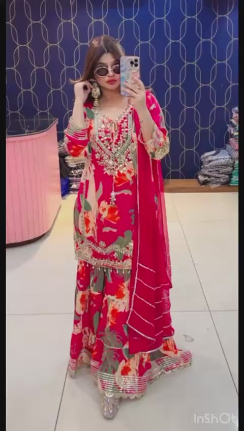 Article 1945 – Printed Crepe Sharara Set for Women | Elegant Party & Festive Wear | Sizes 40–46