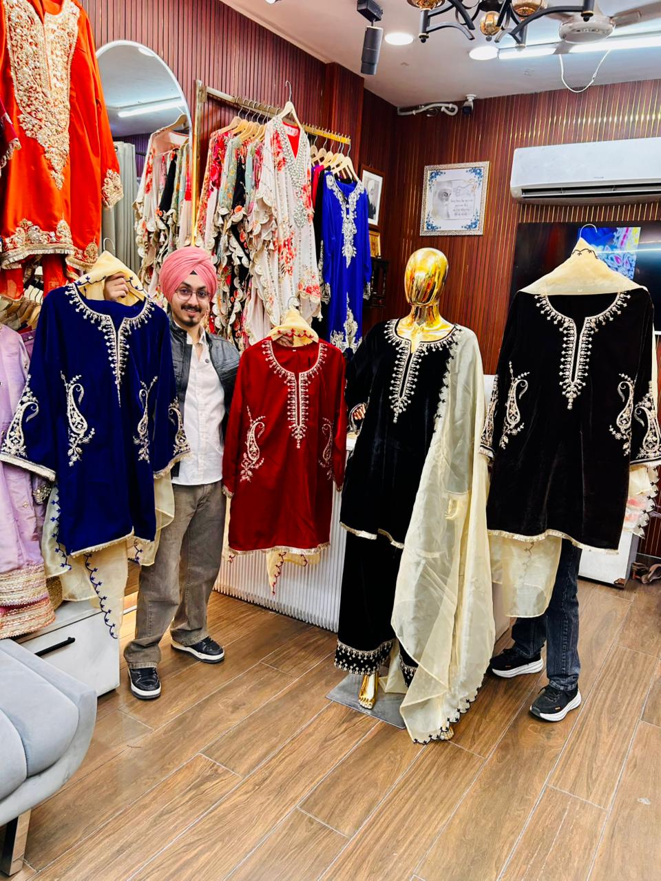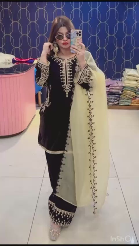 Experience timeless luxury with Article 1946, a Premium Velvet Farshi Salwar Suit beautifully crafted for festive and wedding occasions.