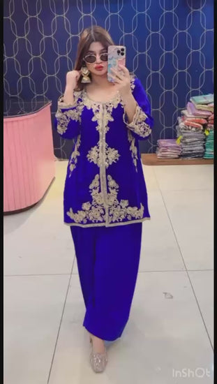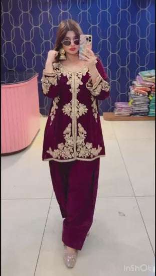 Article 1956 is a stylish and elegant Farshi Salwar Set crafted in premium pure crepe fabric. This beautiful ensemble features a short kurti highlighted with intricate and graceful work, paired with a classic farshi salwar that adds a regal ethnic charm. Designed for comfort and sophistication, this outfit is perfect for festive occasions, family functions, parties, and traditional gatherings.