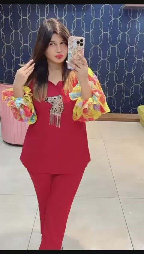Rutba Khan 3067 – Premium Imported Fabric Cord Set With Handwork & Designer Balloon Sleeves | Sizes 38–46 | Urban Closet